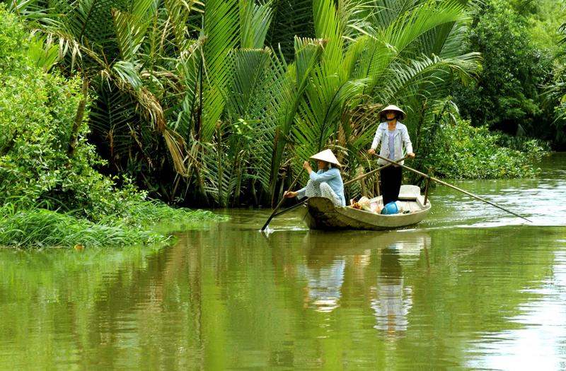 Береговая линия Вьетнама — территория в 3,5 тысячи километров, обрамленных идиллическими пляжами и лагунами. Буйная тропическая растительность покрывает Вьетнам от Южно-Китайского моря до дельты реки Меконга. Дельта Меконга третья по величине в мире, а истоки её находятся на тибетском нагорье в 4,5 тысячах километров отсюда. Вьетнамское название дельты — "Улонг", что означает 9 драконов, потому что в море здесь вливается 9 протоков этой могучей реки. Общая площадь дельты около 40-ка тысяч квадратных километров (почти равная площади Голландии) — это лабиринт протоков и островков. Этот самый плодородный район страны производит достаточно риса, чтобы прокормить половину всего населения Вьетнама.