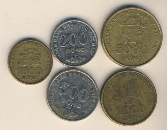 Национальной валютой Вьетнама является вьетнамский донг, что на местном наречии означает медь, бронза. В обращение он вошел после обретения независимости Северным и Южным Вьетнамом и их воссоединения (событие датируется 1975 годом). Общепринятое сокращение донга — VND. В денежном обиходе вьетнамцы используют монеты номиналом 200, 500, 1 000, 2 000 и 5 000 донгов. Бумажные деньги представлены купюрами в 100, 200, 1 000, 2 000, 5 000, 10 000, 20 000, 50 000, 100 000, 200 000 и 500 000 донгов. На лицевой стороне монет высечен герб страны, на реверсе — номинал. С аверса всех купюр смотрит Хо Ши Мин, а реверс демонстрирует географические достопримечательности Вьетнама. Монеты Вьетнама достоинством в 200 и 500 донгов отчеканены из стали и покрыты медью. Монеты более крупного номинала изготовлены из никелированной стали.