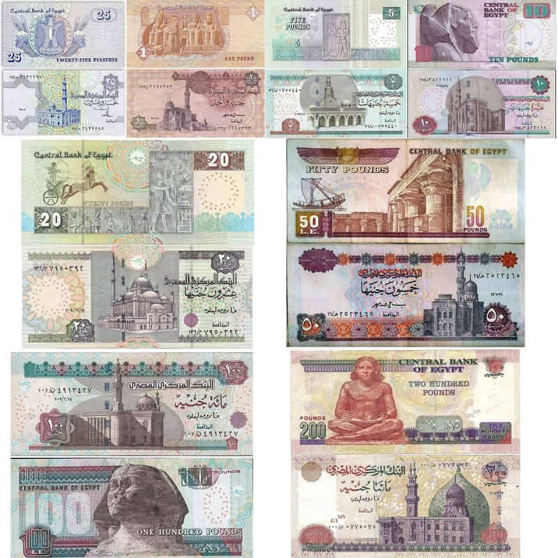 Египетский фунт является национальной валютой Египта. В международном обращении его обозначают EGP и LE (египетская лира). На территории страны встречаются и цены, указанные в пиастрах (pt). Сам местный народ в обиходе называет свои деньги паунтами. Один египетский фунт содержит 100 пиастров. В обращении ходят купюры такого номинала: 1, 5, 10, 20, 50, 100 и 200 фунтов. Пиастры представлены банкнотами достоинством в 25 и 50 единиц. Монеты Египта отчеканены по 25 и 50 пиастров, а также по 1 фунту. Совсем редко встречаются монетки милльемы. Их номинал рассчитан на 1, 2, 5, 10, 20 милльемов. Такие монетки практически вышли из денежного оборота, но если они попадаются, туристы оставляют их себе на память.