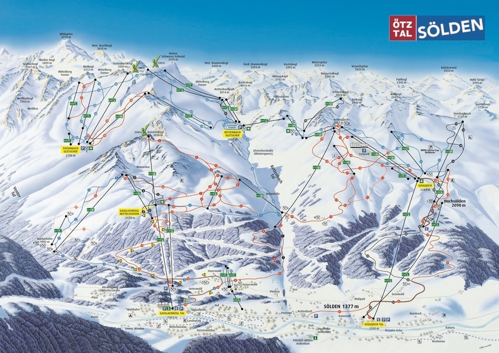 Горнолыжный курорт Зельден - карта