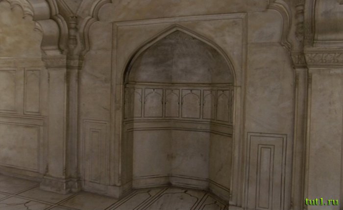 В мечете из чудесного белого мрамора, каждое утро день Шах-Джахана начинался с уединенной молитвы. Здесь, как и его предшественники, он являл взору публики свою королевскую личность.