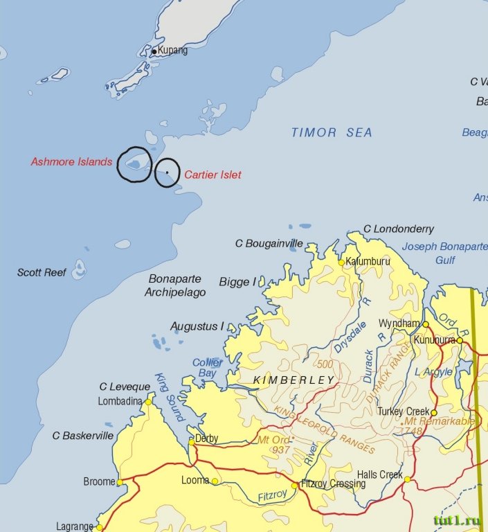 Координаты островов Ашмор и Картье — 12°14′ ю. ш. 123°05′ в. д.