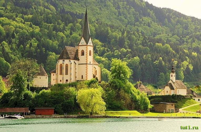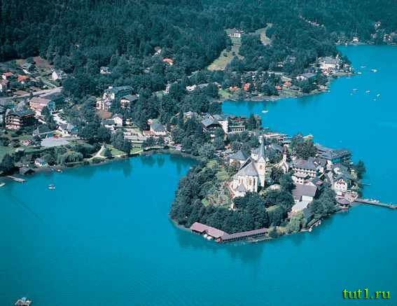 На южном берегу озера на скалистом выступе полуострова Мария-Вёрт покоится небольшой готический собор. Это одно из самых романтичных мест всей Каринтии, особенно популярное среди свадебных пар. Это очень красивое и дышащее необыкновенным покоем место. Возле стен храма небольшой погост, а внутри церкви на барочном алтаре возвышается фигура Богоматери. Она относится к числу наиболее изысканных готических резных скульптур.