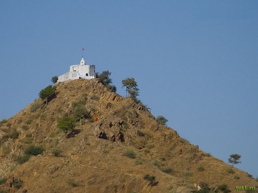 На вершине небольшой горы над Пушкаром, возвышается храм необычной формы. Это тоже место паломничества. Мужчины и женщины поднимаются к нему рано утром, когда еще не так жарко. До храма приходится подниматься примерно час.