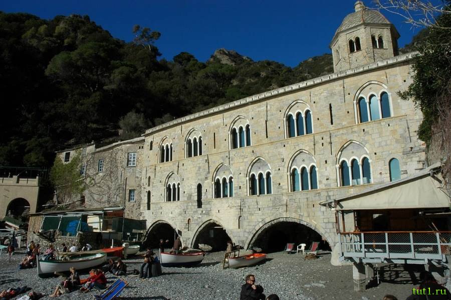 Если обратится к пищи духовной — для этого следует отправится в аббатство Сан Фруттуозо. Попасть туда можно только со стороны моря, так как аббатство приютилось в одной из бухт, а со стороны суши укрыто горой. Аббатство Сан Фруттозо возникло в укромной бухте примерно в IX-X веках, и хотя его происхождение до сих пор окружено мифами и легендами, историки полагают, что основал его епископ Таррагоны — Проспирио. Его корабль, спасаясь от арабских пиратов, потерпел в этих местах кораблекрушение. Укрыться от морских разбойников Проспирио удалось в морской бухте, а поскольку епископ вез с собой мощи великомученика Фруттозо, то для сохранения этой бесценной реликвии епископ сначала возвел церквушку, а затем основал аббатство. Культ святого вскоре распространился по всей Лигурии и достиг таких масштабов, что великомученик был признан покровителем лигурийских моряков.