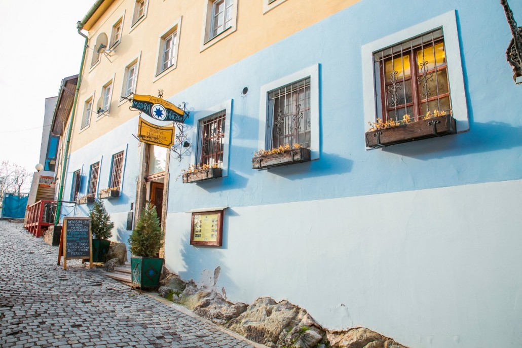 - У подножия древнейшего замка разместилось колоритное заведение Modra Hviezda. Здесь сбудутся мечты самого изголодавшегося туриста – сытная, вкусная еда ждет вас. Расположен ресторан по адресу Beblaveho, 14.