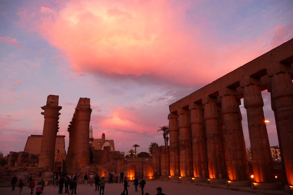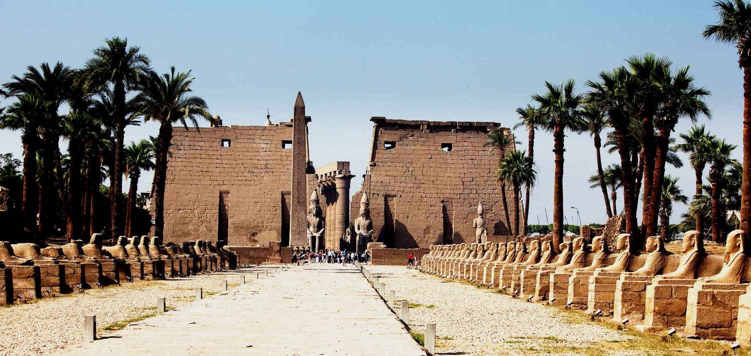 Туристическую поездку в Египет нельзя считать завершенной без посещения одного из интереснейших культовых сооружений — храма в Луксоре. Луксор — небольшой туристический город, поделенный на две части руслом Нила. Храм находится на левом берегу, в центре «Города живых». На противоположной стороне реки — «Город мертвых», в котором расположена Долина фараонов: скальные усыпальницы царей и храмовый погребальный комплекс Рамсеса III Мединет-Абу. В двух километрах южнее Луксорского находится гигантский Карнакский храм, соединенный с Луксорским Аллеей сфинксов (в древности называлась «Священный путь»). Протяженность Луксорского комплекса — 260 метров вдоль Нила. Пилоны (трапециевидные башни у входа в храм) — 70 метров длиной, 20 высотой.