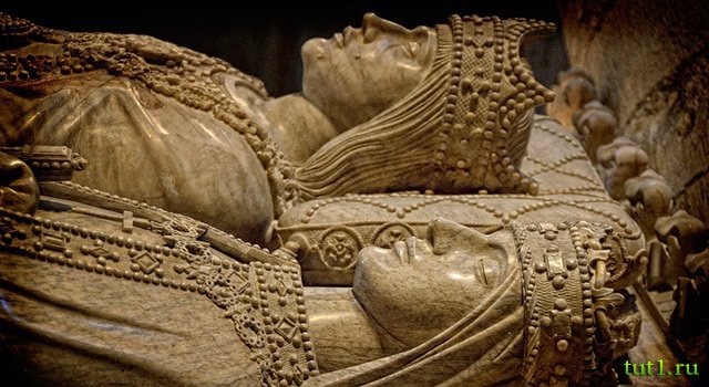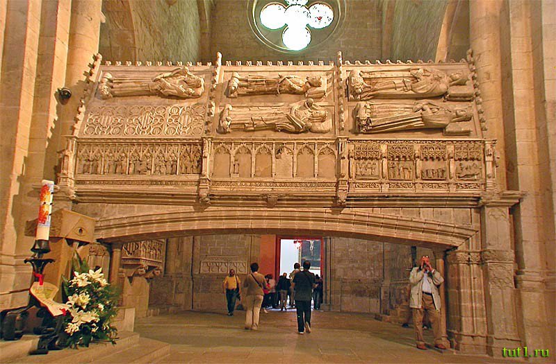 Причем в мраморе выполнены не только короли, но и их супруги. К слову, в ногах у каждой королевы лежит мраморный пес ― символ верности мужу, а у каждого короля покоится лев ― символ власти. Весь этот монументальный ансамбль составляет самую большую группу скульптурных гробниц, выполненных в стиле каталонской готики.