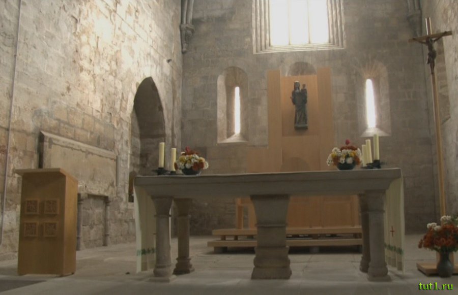В церкви при монастыре Поблет особого внимания заслуживает великолепная резная стена из алебастра.