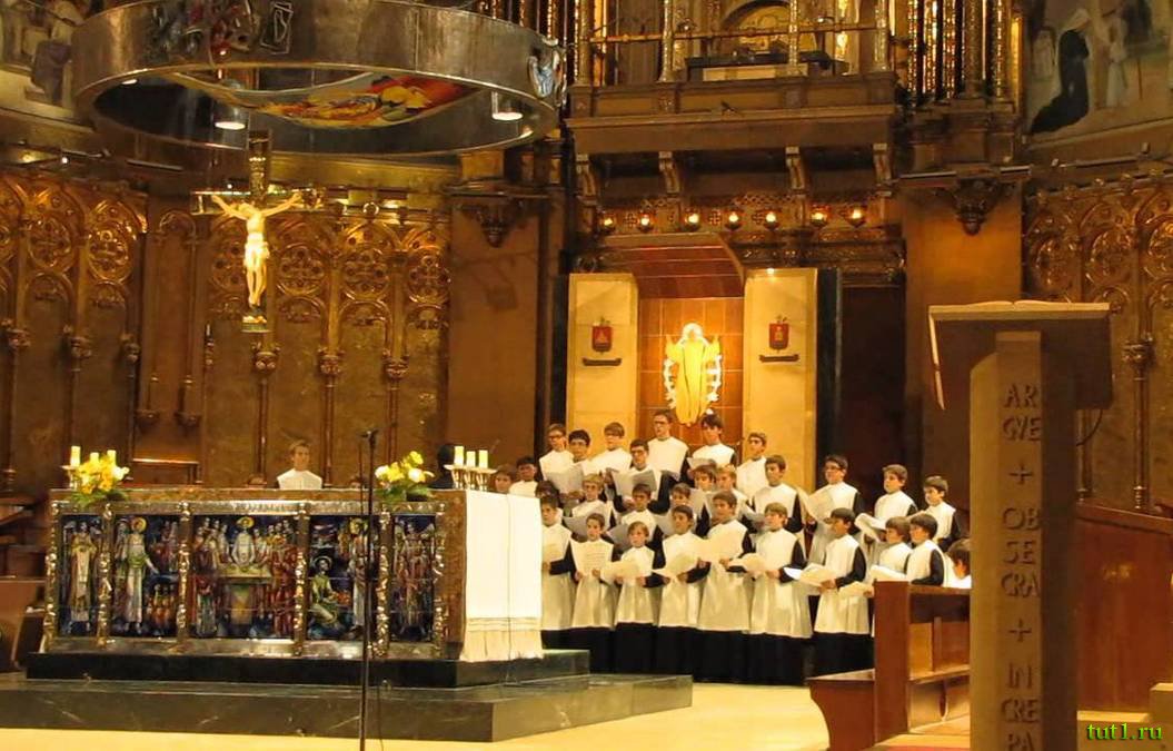 Говорят, что в соборе всегда незримо присутствует дух Девы Марии. Именно к ней — к Мадонне, каждый день в час дня и семь вечера, обращает своё пение хор мальчиков, выстроившихся у алтаря монастыря Монсеррат. Они воспевают Мадонну, а над стриженными головами отроков возвышается фигура Христа, выполненного из слоновой кости.