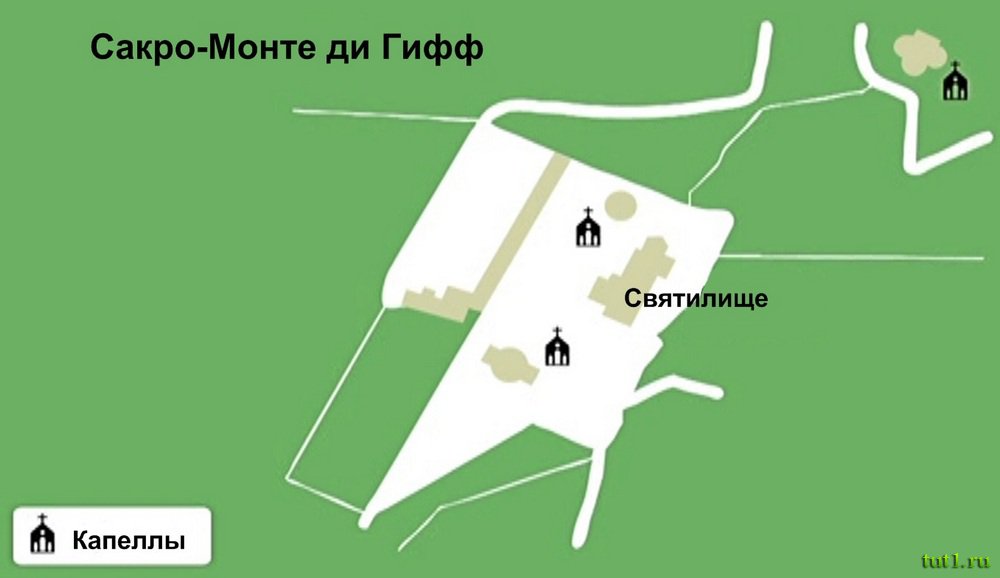 Сакро-Монте ди Гифф. В период между концом XVI и серединой XVII веков, "священная гора" была построена вокруг храма с целью иллюстрации отрывков из Ветхого и Нового Заветов. Эта "священная гора" была построена по модели Сакро-Монте ди Орта и Сакро-Монте ди Варез.