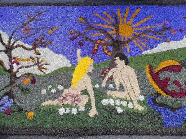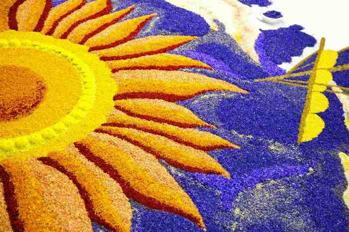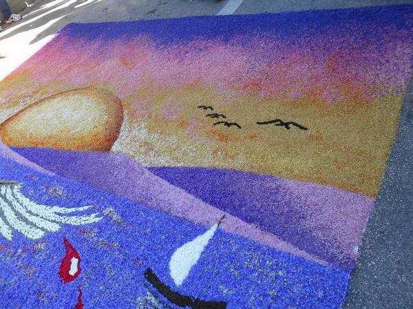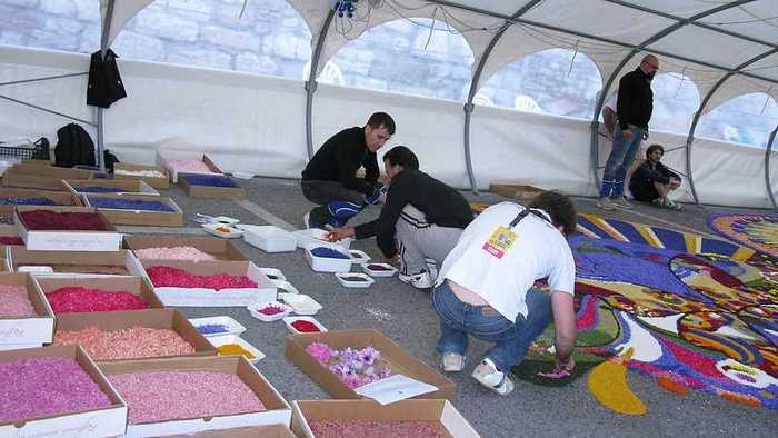 Некоторые листья и лепестки могут быть собранными месяц назад и специально обученные люди по секретной технологии сохраняют природный цвет и яркость лепестков, не давая им засохнуть. Полюбоваться этой красотой приезжают до 40-ка тысяч человек и чтобы листочки не упорхнули от движения воздуха, что создаёт толпа, ответственный сеньор каждые 10 минут вспрыскивает лепестки водой. Выложенные полотна сохраняются до 9-ти утра, а потом, прямо по ним проходит шествие праздника Тела Христова.