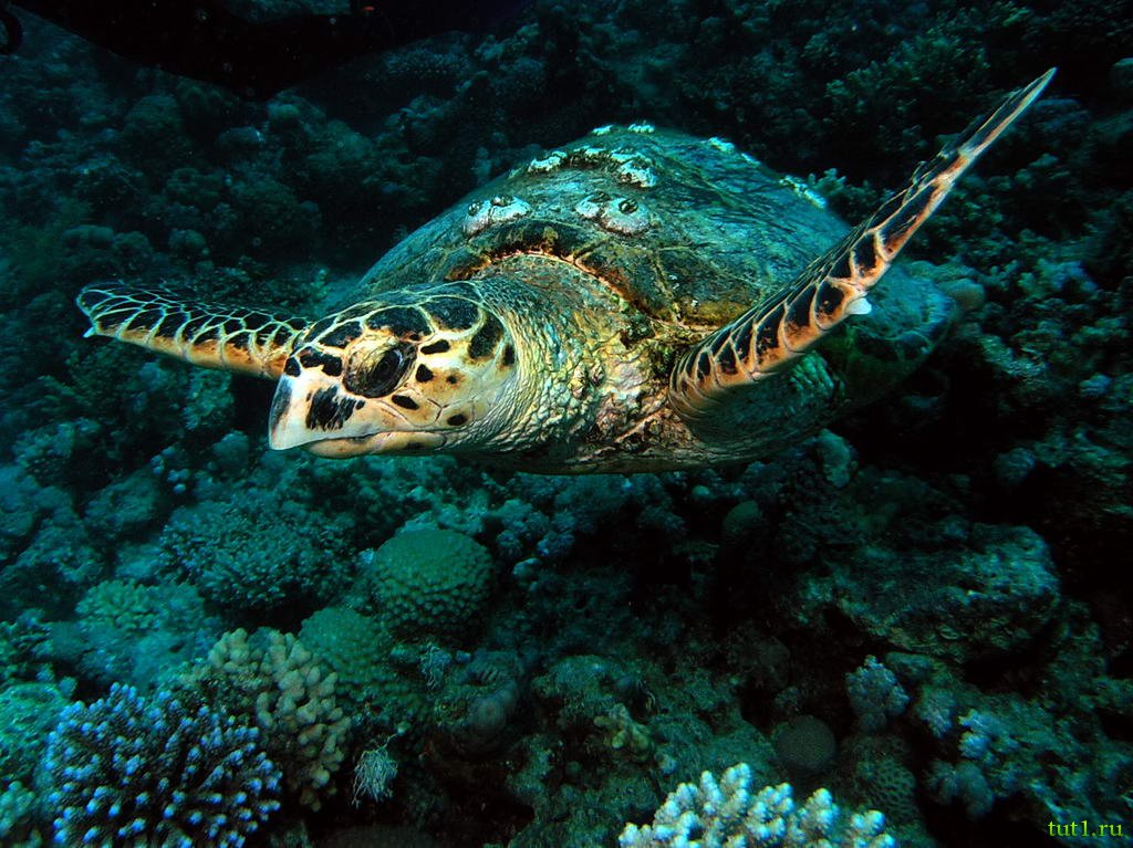 Внимание привлекает редкая зеленая морская черепаха. Морские черепахи мигрируют на дальние расстояния используя для ориентации магнитное поле Земли. Взрослые самки обычно откладывают яйца на том же берегу, где вылупились сами. Морские черепахи вносят вклад в развитие двух экосистем — они очищают от излишней растительности дно, а так же поддерживают естественный баланс на морском берегу. Резкое снижение численности этих животных полностью на совести человека. Черепашье мясо, панцири и яйца высоко ценятся во многих странах. Сейчас, этот вид (вместе с еще 6-ю видами морских черепах) находится на грани вымирания. Некоторые ныряльщики неумышленно убивают их, садясь на них покататься, не понимая, что черепахе надо всплывать чтобы вдохнуть воздуха.