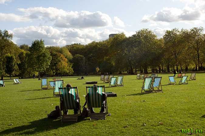 Жители Лондона очень любят проводить в Гайд-парке выходные и свободное время. На огромных зелёных лужайках играют в футбол, в регби, запускают змеев и загорают в шезлонгах. К слову, шезлонги аккуратно складированы по всему парку. Стоит шезлонг на целый день около 10-ти фунтов. Вечером в Гайд-парке лондонцы назначают свидания.