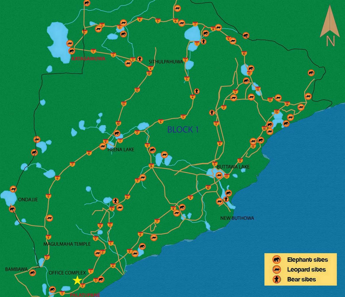 Шри-Ланка, Национальный парк Яла на карте