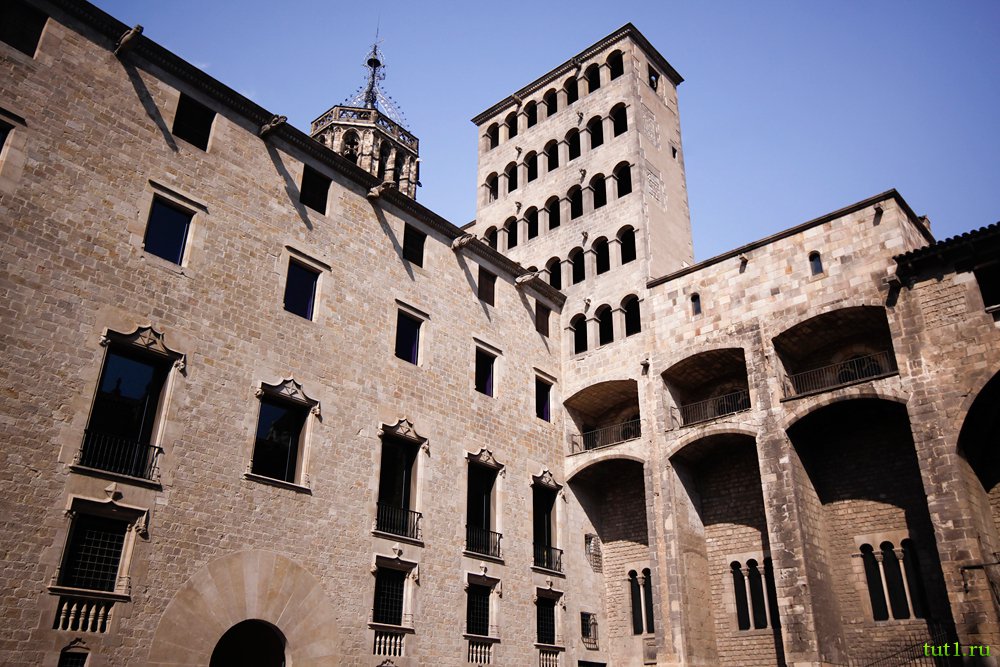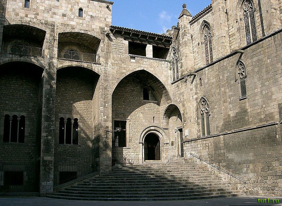 В готическом квартале столько религиозных зданий, что их сложно перечислить — дом архидьякона, Дворец епископа, храм Святого Филиппа, храм Святого Севера, Прибендарный дом, храм Святого Юстуса и Доброго пастуха, капелла Святой Агаты, здание работников благотворительности. Среди светских сооружений выделяется городская ратуша (здание местных властей) и Дворец губернатора. В каждом здании есть внутренний двор с арками, украшенный каменной резьбой и фонтанами. Во дворах растут пальмы. В средние века Балеарские острова, Валенсия, Сардиния и Корсика управлялись Арагон-Каталонским королевством, которое было в Барселоне. До XVIII века, из дворцов Барселоны осуществлялось религиозное, военное, политическое и дипломатическое управление.