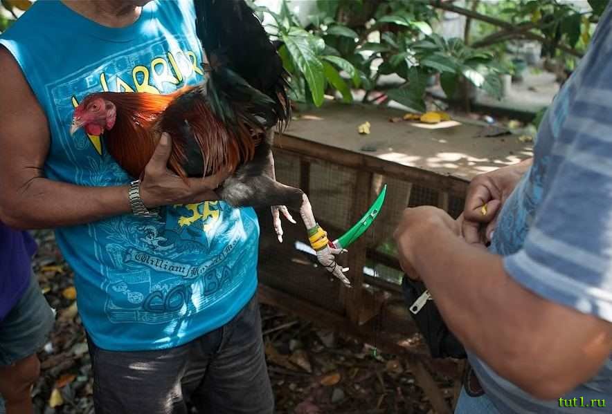 На Филиппинах петушиные бои это национальный вид спорта — как бейсбол в Америке или футбол в Европе. В бои вкладываются такие огромные денежные средства, что правительство не решается вмешиваться — это может стоить им на выборах слишком многих голосов. На Филиппинах очень мало борцов за права животных и вряд ли к их голосам всерьез прислушиваются. Конечно, есть организации, борющиеся за права животных, но их мало кто слушает, да и правительство ничего не может поделать, ведь петушиные бои уже стали частью филиппинской культуры. Когда-то петушиные бои были популярны во всем мире. Даже американские президенты Томас Джеферсон и Джордж Вашингтон были их поклонниками.