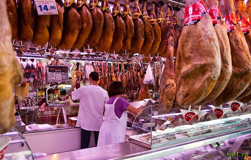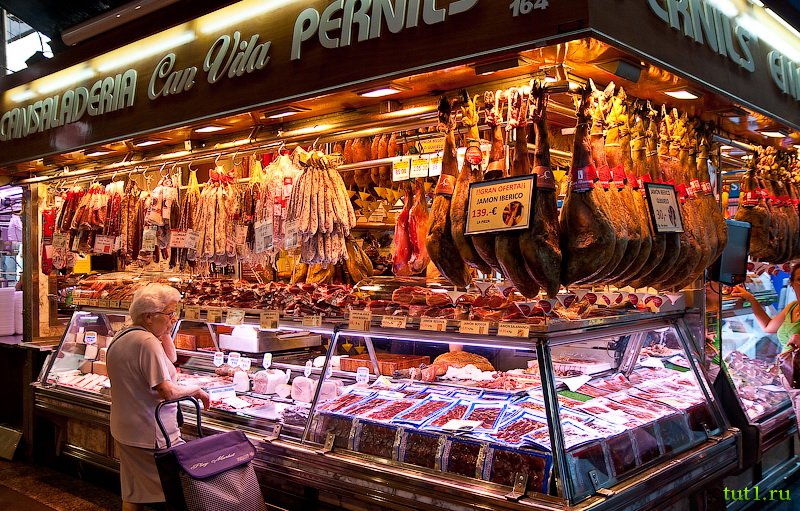 Пройдя все ряды, вы можете покинуть территорию рынка через задний вход. Здесь вы увидите уборщиков, которые складывают картонные коробки в мусоровоз, громко обсуждая вчерашние футбольные события. Немного дальше одиноко стоит здание продуктового магазина, однако людей возле него, скорее всего вы не увидите. Это обусловлено тем, что местные власти запрещают строительство супермаркетов в пределах Барселоны, чтобы они не конкурировали с рынками. Данный магазин является редким исключением, однако не пользуется спросом у населения и терпит убытки. Покидая рынок, не забудьте приобрести на память что-нибудь из сладких изделий или испанские специи, так как много килограммовый окорок вы вряд ли сможете довезти домой.