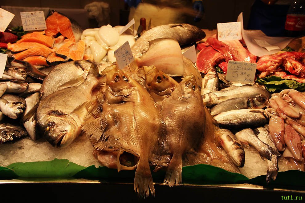 Стоит немного остановиться в рыбных рядах, представляющих собой круг, который состоит из прилавков. Здесь лежат горы из креветок разных размеров, устриц, морских гребешков, мидий, раков, омаров, крабов, улиток. Также в рыбных рядах вы найдете крупных рыбин с открытыми ртами, тунцов, сибасов и многое другое. Местные гиды называют рыбные ряды «сердцем» Бокерии.