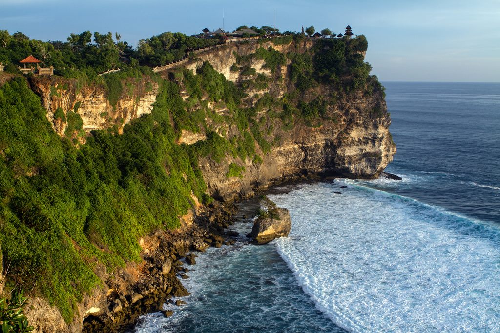 Храм Улувату был построен на краю полуострова на высокой скале, постоянно омываемой волнами. Богиню Деви Лаут почитают как повелительницу моря. Легенда гласит, что скала, на которой сейчас стоит святилище, когда-то была ее кораблем, но он стал камнем. Выйдя на скалистый берег, богиня стала защитницей острова. Группа сооружений из белого известняка была построена в ее честь, с их площадок открывается великолепный вид на бурное море со 100-метровой высоты.