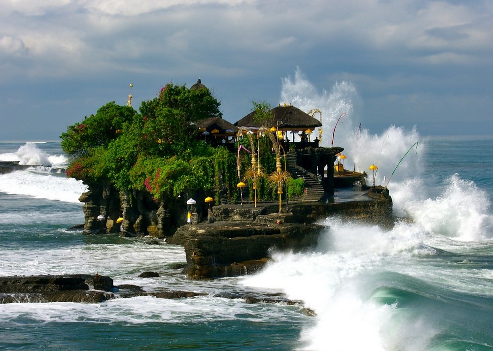 Пура Танах Лот — действующий индуистский храм, один из шести имперских храмов, одно из самых популярных мест среди туристов и символ не только Бали, но в сей Индонезии. Красивее всего он выглядит на закате (из-за близости к экватору темнеет здесь около 7-ми вечера). Во время отлива можно пешком пройтись к скале, на которой построен храм. Здания были сооружены из бамбука и покрыты рисовой соломой. Иностранцам не разрешено заходить внутрь ограды, но даже с террасы кафе, расположенного на побережье, открывается великолепный вид на закат над храмом.