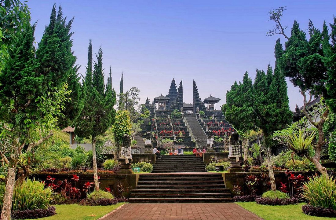 Храм Пура Бесаких — самый важный имперский храм на Бали. В таких храмах проводятся все большие празднества, в которых участвуют все островитяне. Он был построен так же как и Улун Дану — на кратере вулкана. В древние времена были серьезные причины строить храмы на вулканах — в древних природных религиях огонь и вулканы почитались как боги. Ворота в форме разделенной пирамиды — первое, что бросается в глаза. Пагоды с 7-ю, 9-ю и 11-ю ярусами - святыни, в которых по праздникам обитают боги.